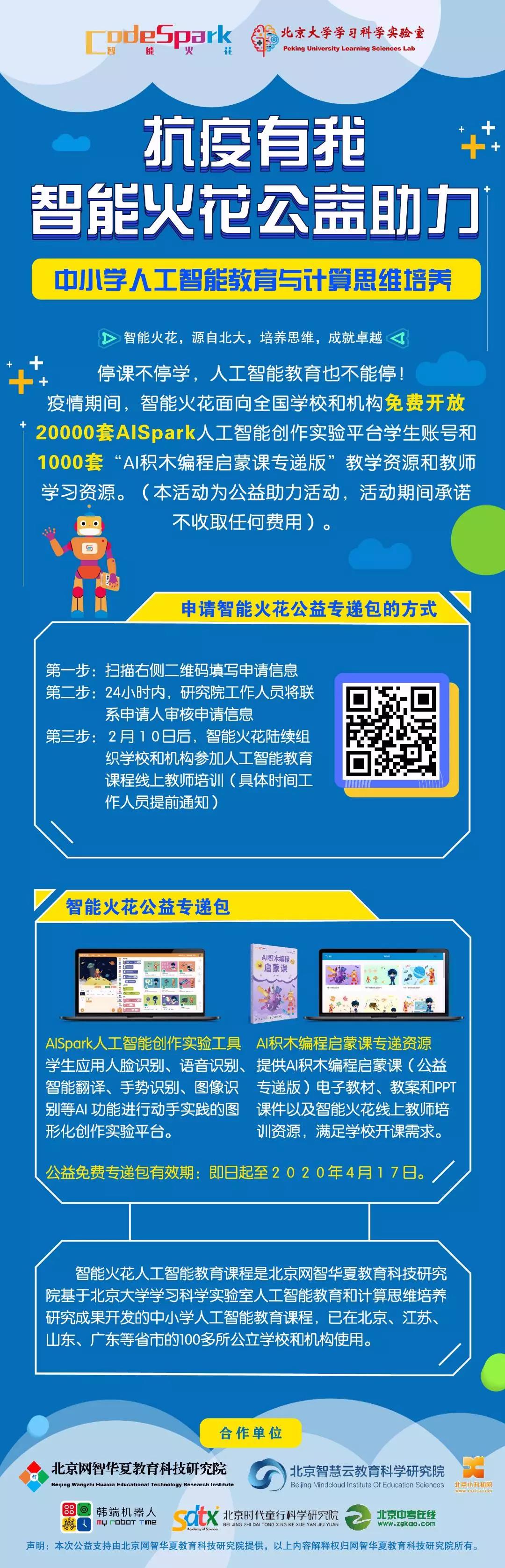 “抗疫有我,停課不停學”,韓端機器人合作網智華夏教育研究院共同推動的中小學生人工智能教育與計算思維培養線上課程,"智能火花,源自北大 ,培養思維,成就卓越"!