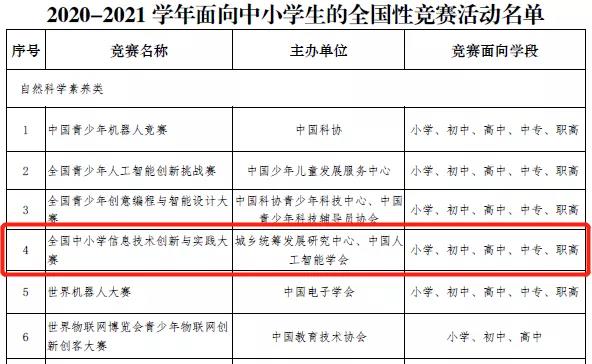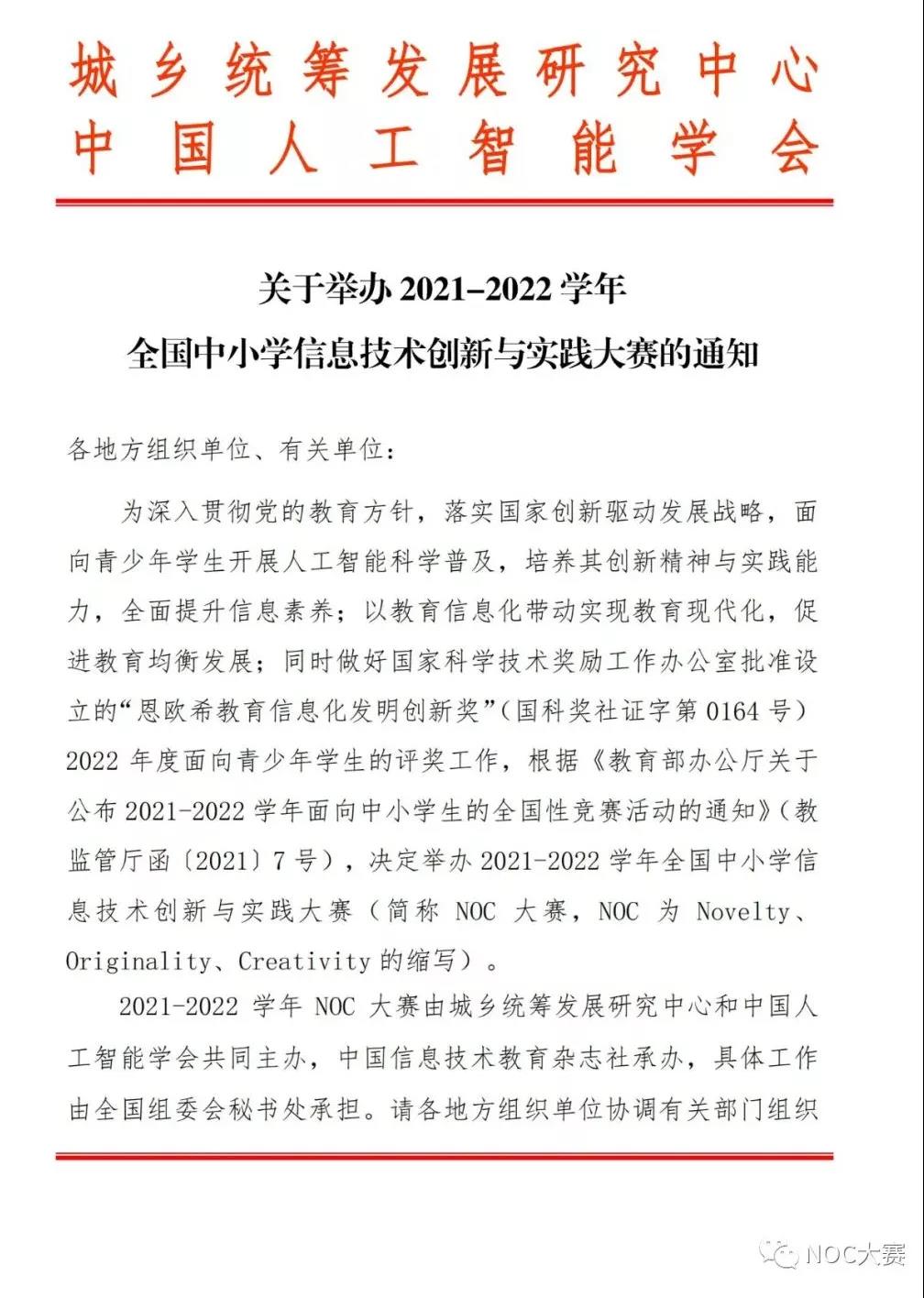關(guān)于舉辦2021-2022學(xué)年全國中小學(xué)信息技術(shù)創(chuàng)新與實踐大賽(第20屆NOC)的通知