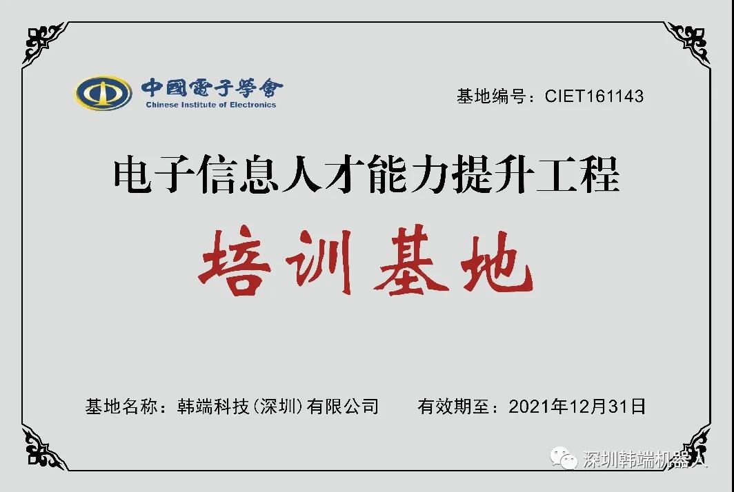 為進一步加強專業技術人才隊伍建設,提升學校和培訓機構的教學服務能力,韓端科技(編號:CIET161143)作為中國電子學會“電子信息人才能力提升工程培訓基地”定于2022年1月舉辦青少年機器人創客與教學指導力提升培訓班。