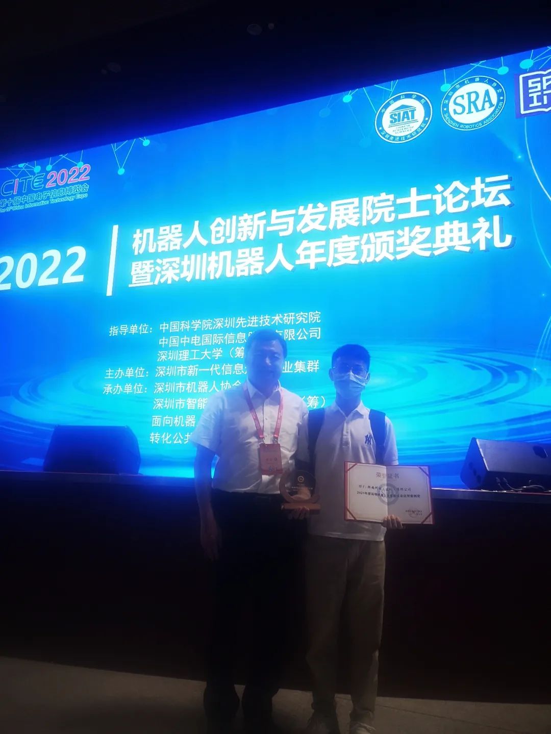 (深圳市機器人協(xié)會秘書長畢亞雷先生與公司受獎代表合影留念)