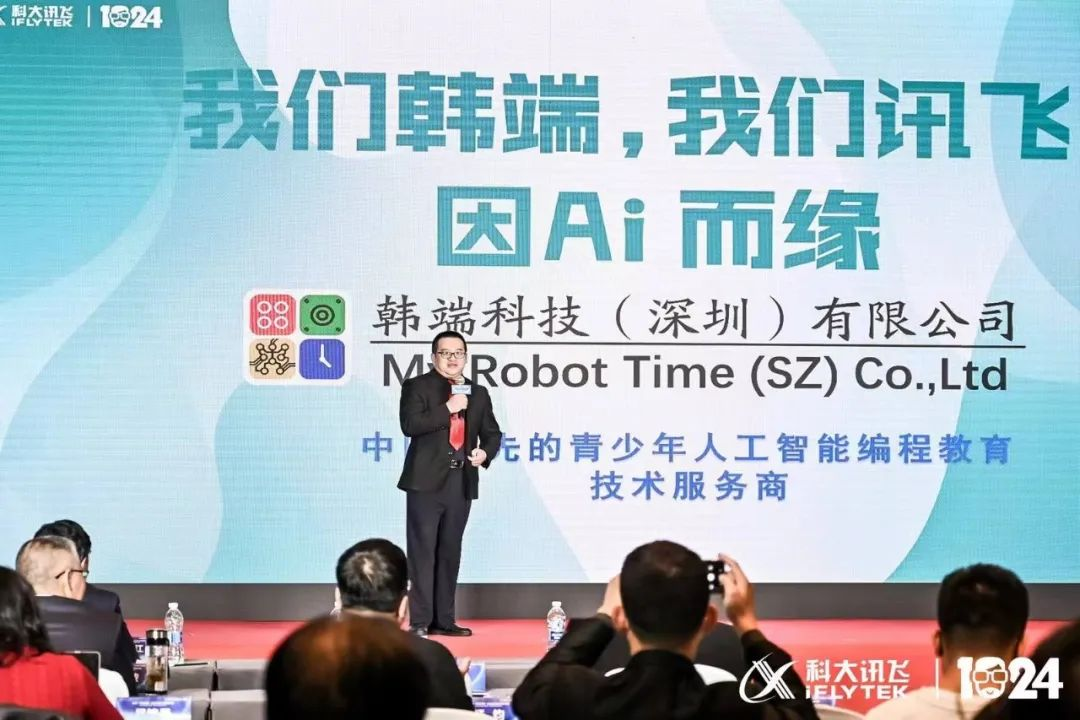 與此同時,韓端科技作為科大訊飛核心生態鏈企業之一受邀參加了本屆1024的線下科博展。韓端科技在本次1024展覽中重點展示了AI在機器人教育、數字化教學平臺等領域的創新應用成果,用AI開啟數字化新世界,展現科技創新教育的力量。