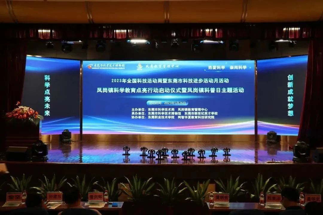近日,東莞市鳳崗鎮舉辦了科學教育“點亮”行動啟動儀式暨科普日主題活動。本次活動,由東莞市科學技術局、鳳崗鎮教育管理中心主辦,東莞市科學技術博物館、東莞市新世紀英才學校承辦,東莞職業技術學院、網智華夏教育科技研究院協辦。市教育局教研室教研員何建東、陳重洋,市科學技術博物館公共教育部副部長黃明秀、高級工程師黎堅,鎮教育管理中心主任曾劍輝、副主任王裕,鎮教育管理中心教研員鄧秀玲、陳少卿、溫凱等領導、嘉賓,以及全鎮各中小學分管科學教育的行政、科學學科教研組長、英才學校部分師生參加了此次活動。