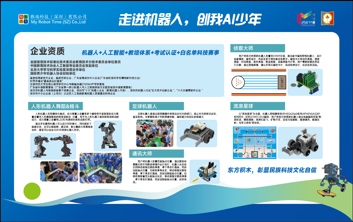韓端人工智能獲邀技術支持本次創客節,將攜“人形機器人、編程機器人、AI實驗教具”精彩亮相活動現場,展現科技與體育、藝術結合之美,增強孩子動手動腦、科學創作的能力,培養學生人工智能科學素養和人文科技素養。屆時熱烈歡迎大灣區學校老師家長孩子打卡深圳北理莫斯科大學,“走進機器人,創我AI少年”,讓“中國元素自主東方積木+Al教具”一直陪伴大小孩子科學健康成長。