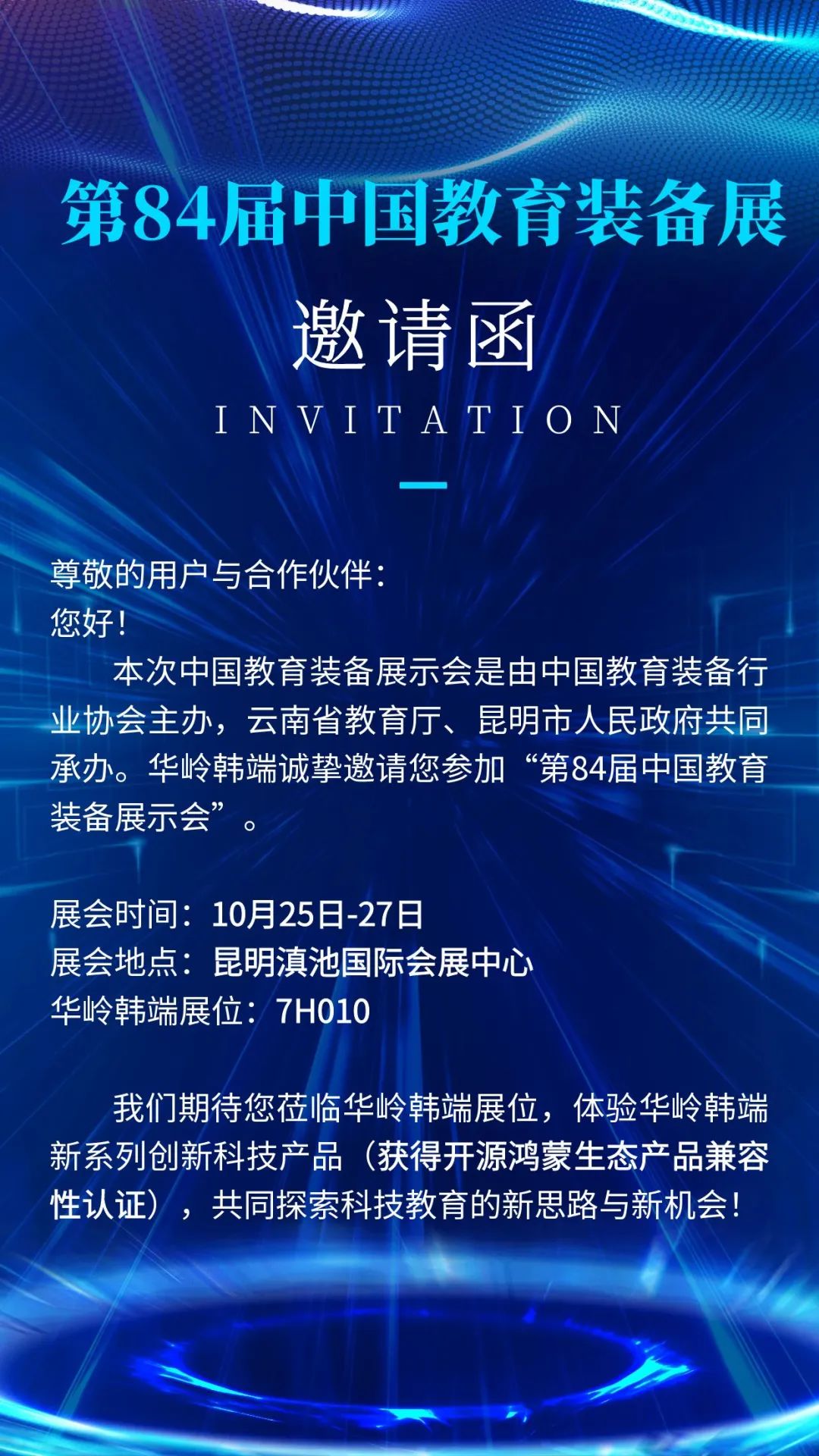 邀請函 | 第 84 屆中國教育裝備展啟幕,華嶺韓端誠邀您相聚昆明!