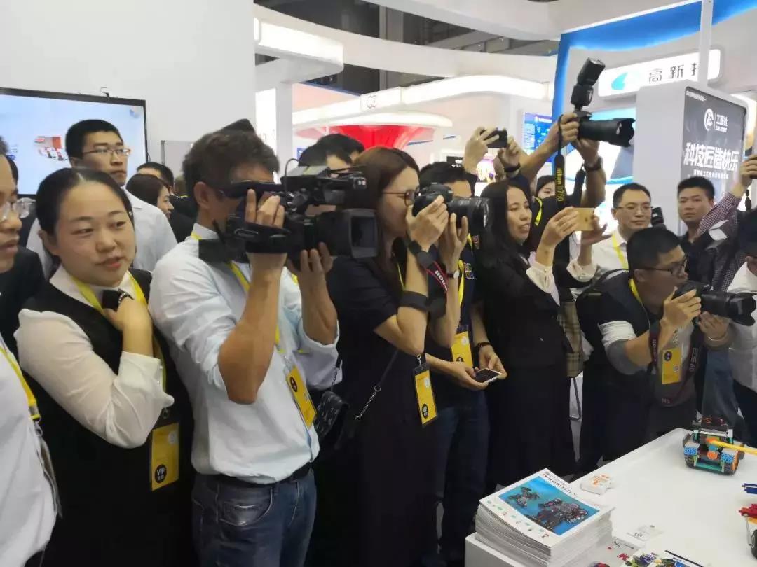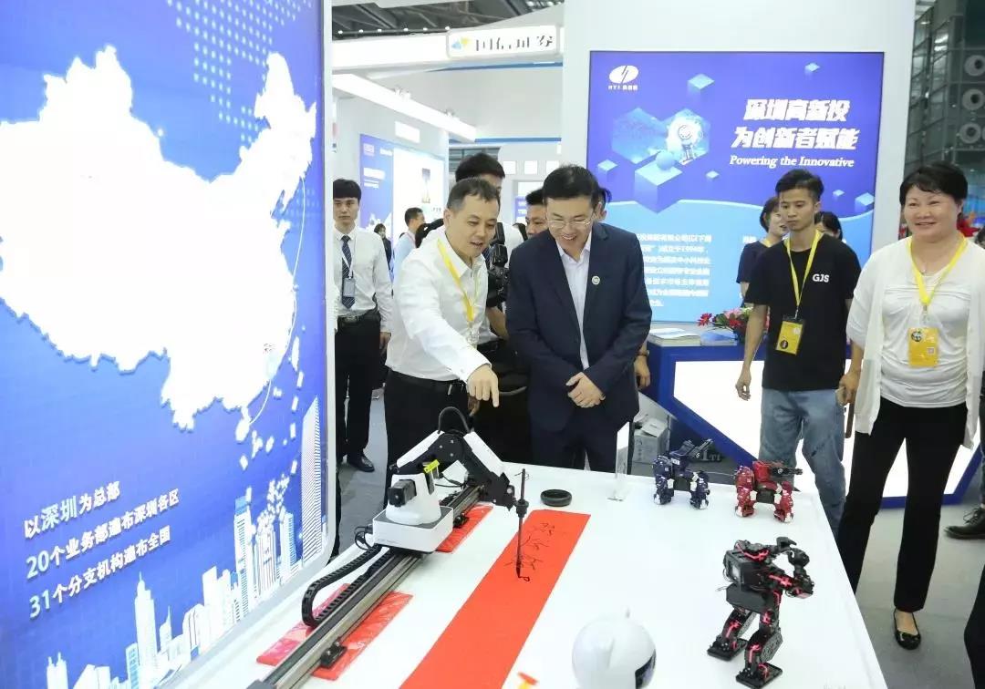 在現場上,深圳市副市長艾學峰、市政府副秘書長吳優、投控公司領導一行蒞臨展區參觀指導,對“編程機器人”、“競技機器人”等高新投扶持企業產品非常感興趣,尤其對我司全年齡段的STEM教育產品課程體系贊賞有加。