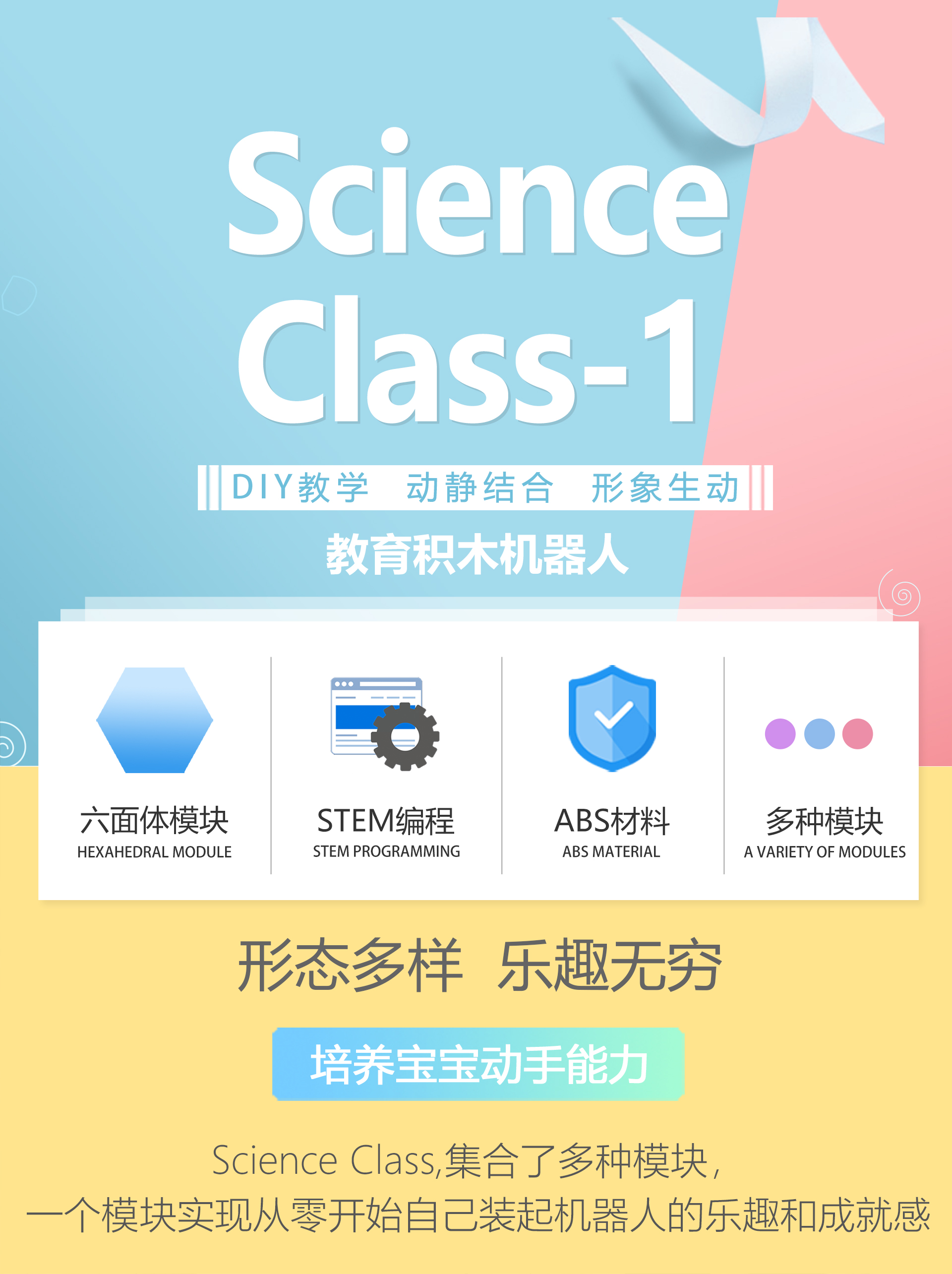 產品參數 產品名稱:好伙伴初級(HUNA class1) 外觀顏色:多彩積木 產品材料:ABS環保材料 模塊特性:六面體模塊,小模塊 電 機:DC馬達*2 主 板:預編程主板,6種模式選擇,2個電機接口,2個輸入 口,3個輸出口 傳 感 器:遙控接收端1個,IR紅外傳感器*3 模型數量:12個(8個動態和4個靜態) 額定電壓:6V (5號電池4節) 功 能:DIY 教學,主板為單片機控制模式,程序已設置完畢,可設置模式,帶遙控器控制。 適用年齡:7-9歲 重 量:1.6KG 配 置:初始教案 包裝尺寸:寬260*厚210*高170mm 彩盒包裝
