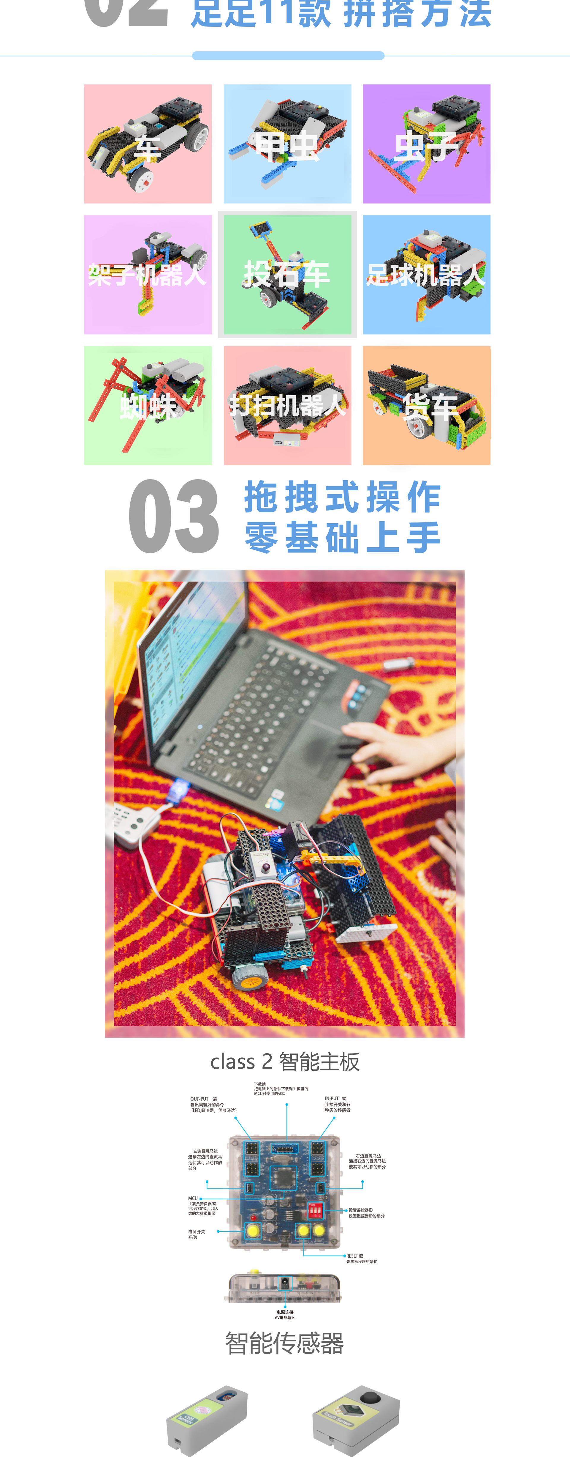 功能:DIY 教學,主板為單片機控制模式,PC端圖形化編程,可使用我司各類傳感器,帶遙控器控制。